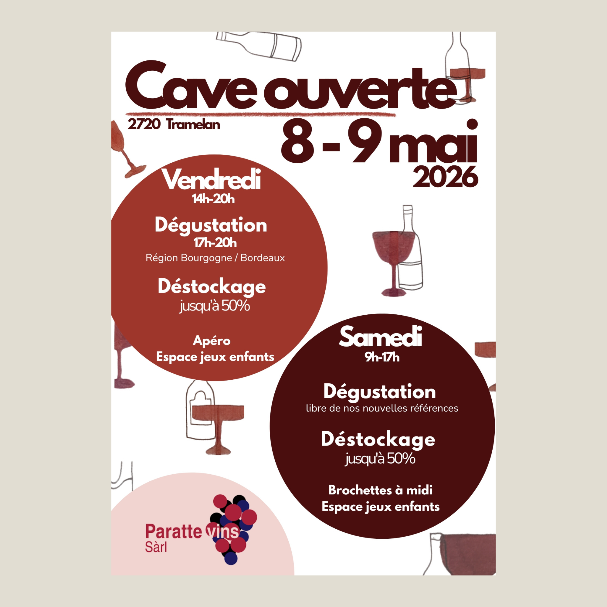 Paratte Vins Sàrl fournit l’ensemble des boissons dont tu as besoin pour ta manif'. Toutes les boissons sont consignées. Nous mettons à disposition des frigos, remorques frigorifiques, tireuses à bière, machines à café, vaisselle en plastique jetable ou réutilisable, comptoirs, bars, tonneaux et bien d’autres choses.